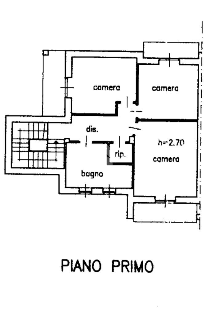 Salendo al piano superiore, si trova la zona notte, articolata in tre camere da letto matrimoniali di diverse metrature, pensate per rispondere alle diverse esigenze della famiglia. Sullo stesso livello è presente un secondo bagno, di generose dimensioni, dotato di vasca.